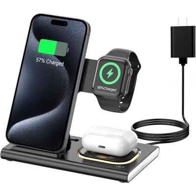 3 in 1 Charging Station for iPhone 17 - Wireless Charger for Apple Devices for iPhone 17 16 15 14 13 12 11 Pro Max - Foldable Wireless Charging